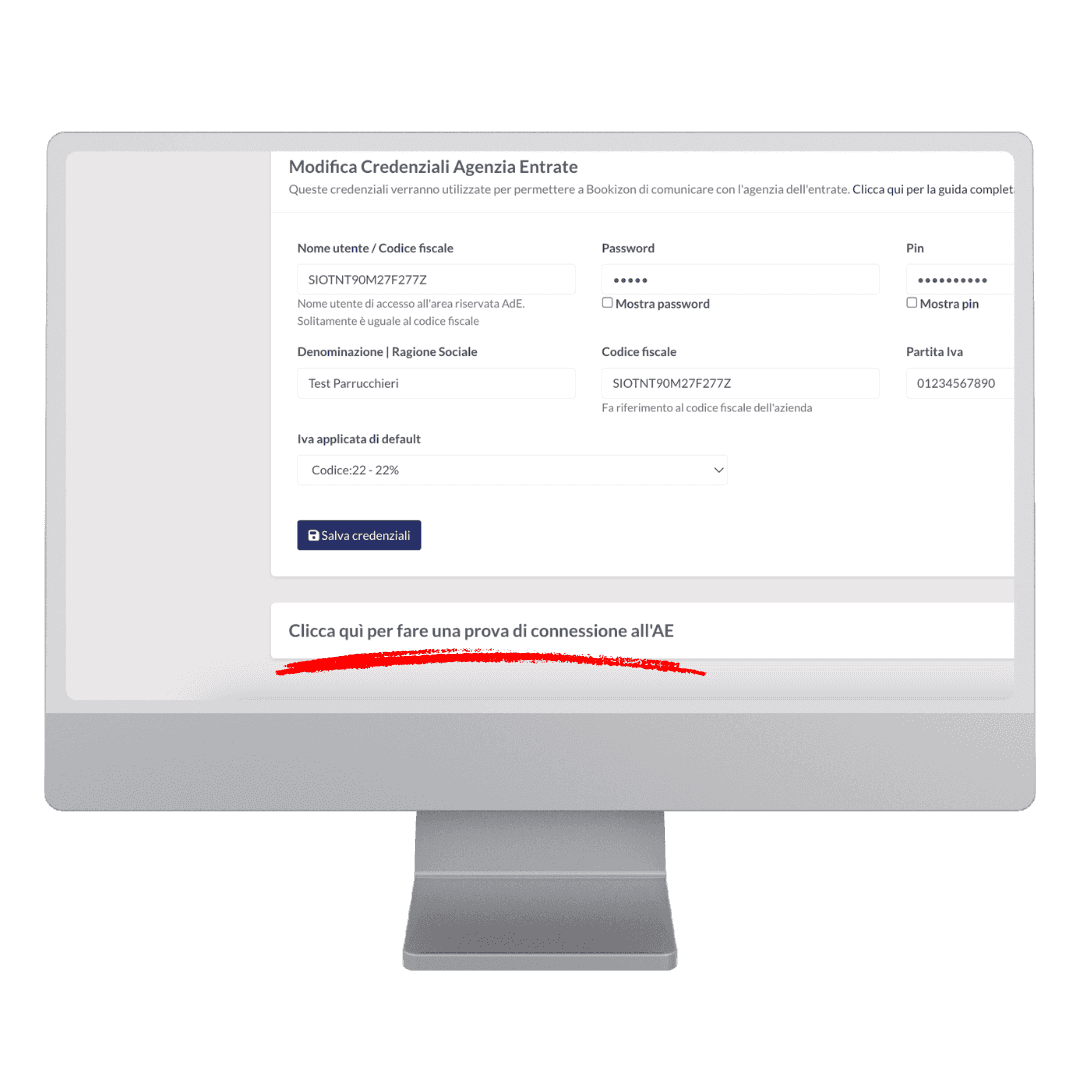 4. Clicca in basso e testa la connessione con l'Agenzia delle Entrate